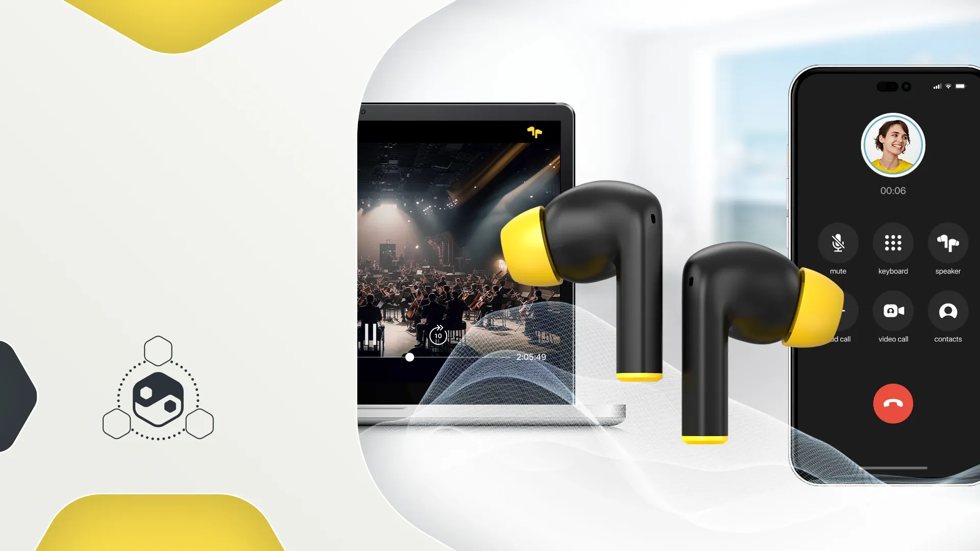 Erleben Sie Klang in einer neuen Dimension mit dem Hexagon 7 True Wireless Stereo Headset, entwickelt für alle, die mehr von ihrem Audio erwarten. Die aktive Geräuschunterdrückung (ANC) blendet störende Umgebungsgeräusche aus und lässt Sie sich auf das Wesentliche konzentrieren. Möchten Sie dennoch Ihre Umgebung wahrnehmen? Die Umgebungsgeräuschunterdrückung (ENC) mit vier präzise abgestimmten Mikrofonen sorgt für glasklare Sprachqualität bei jedem Anruf – selbst in lauter Umgebung. Dank Bluetooth 5.4 profitieren Sie von schneller Kopplung, stabiler Verbindung und energieeffizientem Betrieb mit bis zu 10 Metern Reichweite. Die schnelle Ladefunktion bringt Ihre Ohrhörer in nur 50 Minuten wieder auf Betriebstemperatur. Das kabellose Ladecase sorgt für zusätzlichen Komfort: Einfach auf ein Qi-kompatibles Ladepad legen – fertig. Genießen Sie beeindruckende 27 Stunden Wiedergabezeit mit Ladecase. Die Ohrhörer selbst bieten bis zu 6,5 Stunden Laufzeit ohne ANC und 5,5 Stunden mit ANC – ideal für Pendelwege, Arbeitstage oder Reisen. Elegant und bequem – Hexagon 7 passt sich perfekt Ihrem Alltag an. Jetzt erleben und Klang so flexibel wie Sie selbst genießen.